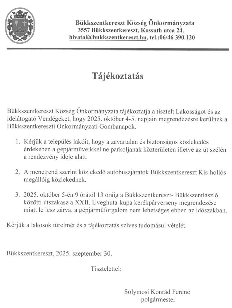 Gombanapok – közlekedési tájékoztatás 2025-10-02 | Nincs hozzászólás Kerékpár,Közlekedés,Menetrend,Rendezvény,Tájékoztatás,Útzár